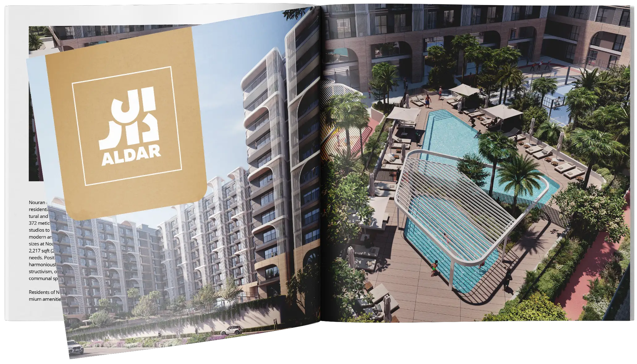 A significant advantage of buying apartments at Aldar Nouran Living is the flexible payment plan: 10% as a down payment, 55% during construction, and the remaining 35% upon handover, scheduled for Q4 2027. This structured plan makes it easier for buyers to invest in their dream home without financial strain, ensuring a smooth and manageable payment process.