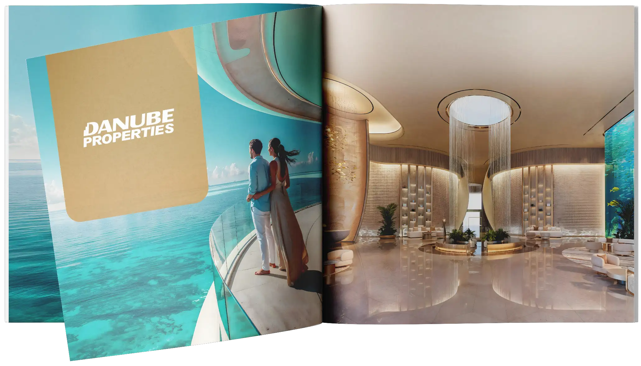 Breez by Danube is a 60-story residential project by the sea at Dubai Maritime City, by Danube Properties. The architecture and interiors here are designed with a maritime theme. For example, there is a grand lobby with an aquarium and a waterfall atrium, as well as gallery corridors and elevator halls with aquarium installations. The tower is adjacent to the waterfront, offering impressive views from the windows, and all the residences here are fully furnished.