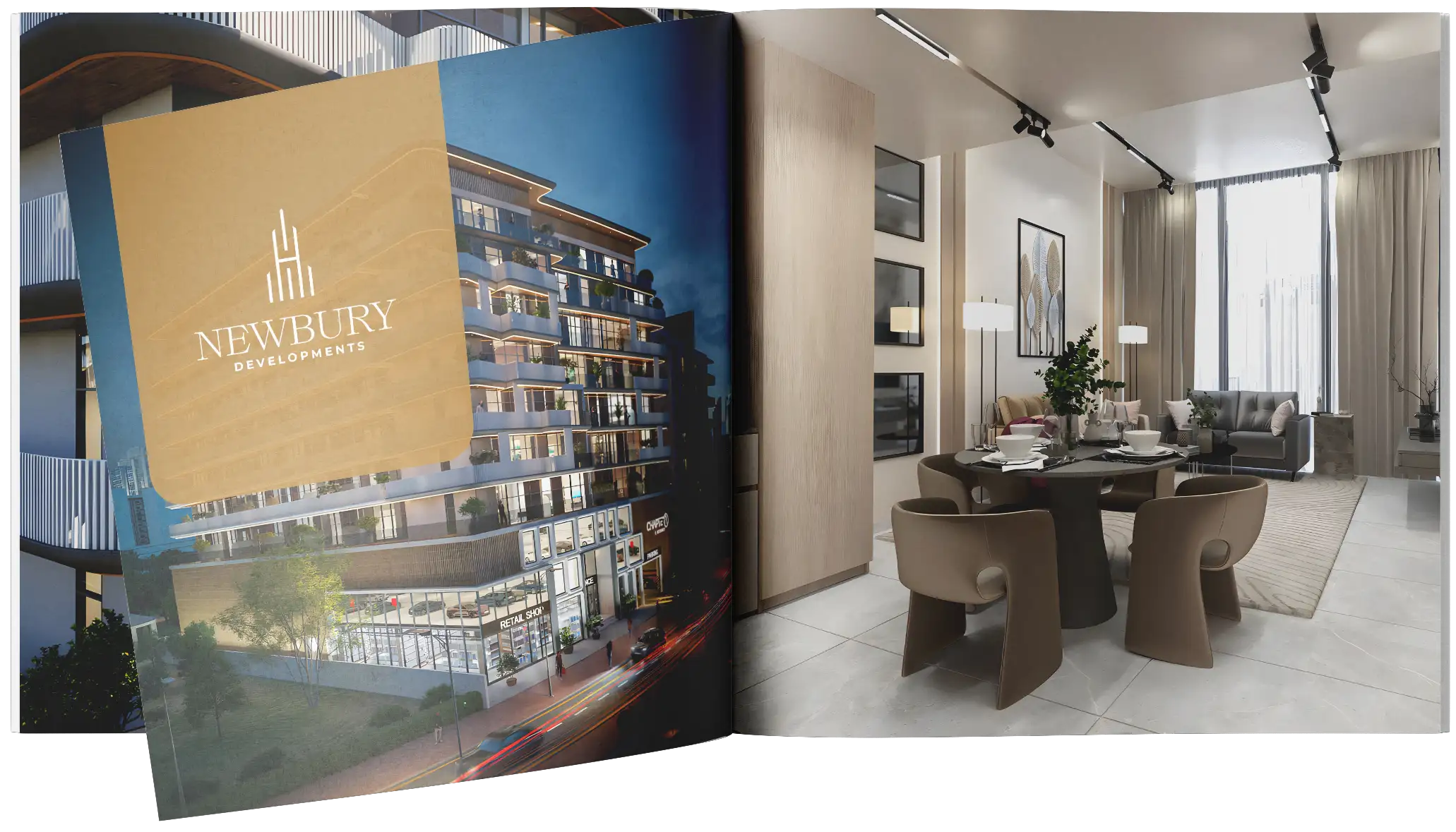 The project is situated at Al Warsan (Dubai International City), and its developer is Newbury Developments. The architectural concept here emphasizes natural light, ergonomic layouts, and neutral finishes.