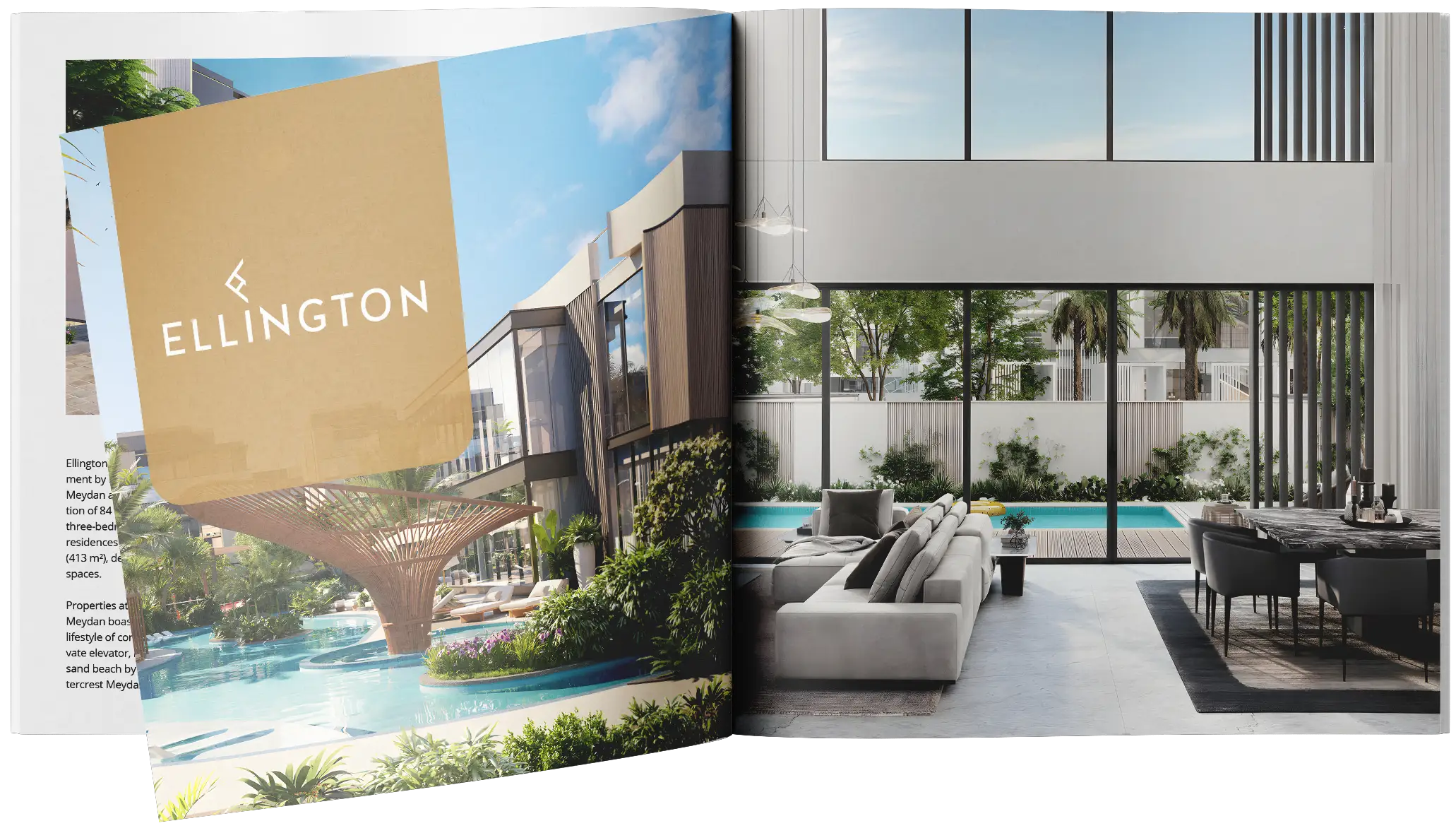 Ellington The Watercrest is an exclusive residential development by Ellington Properties, situated in the prestigious Meydan area of Dubai. This upscale project features a collection of 84 luxury villas and townhouses, comprising both three-bedroom townhouses and four-bedroom villas. The residences vary in size from 3585 sqft (333 m²) to 4449 sqft (413 m²), designed to offer spacious and luxurious living spaces.