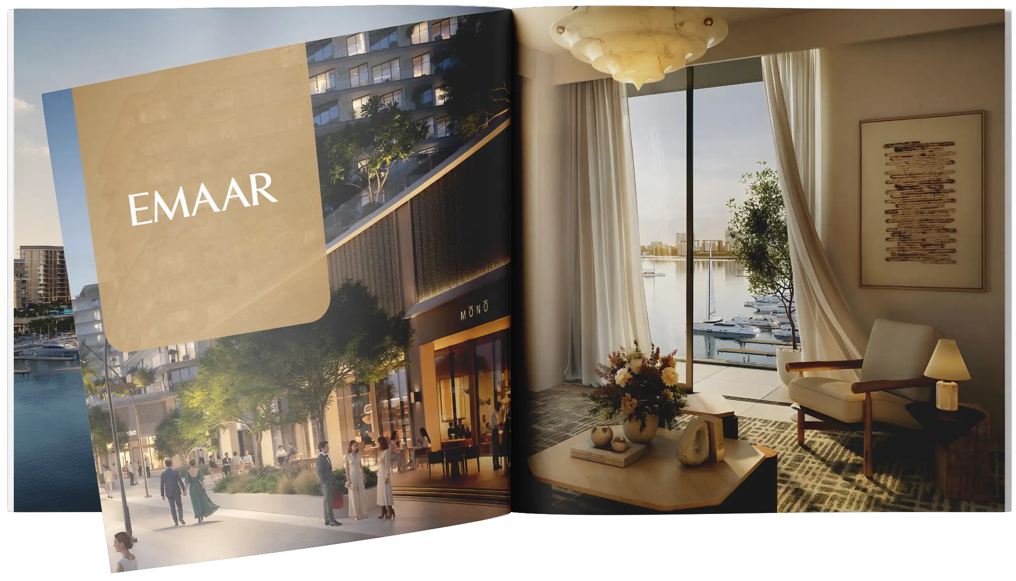 Emaar Aurea at Rashid Yachts & Marina is a waterfront apartment development by Emaar Properties with direct access to the waterfront and marina. The project features modern architecture, panoramic windows, an infinity pool, a yoga studio, a padel court and communal areas.