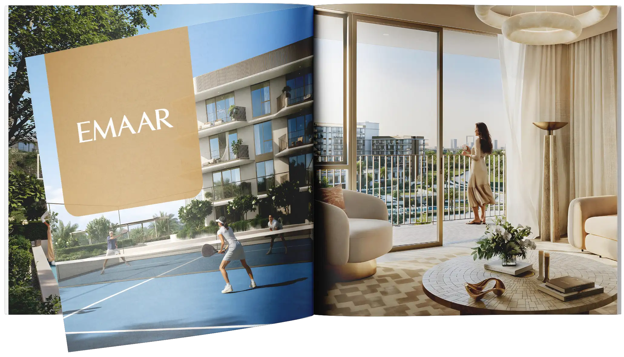 The starting price for apartments at Emaar Sera at RYM is AED 2,100,000 ($571,800) for a one-bedroom option. Two-bedroom residences are priced from AED 3,100,000 ($844,100), and three-bedroom units start at AED 4,300,000 ($1,170,900). You can buy a townhouse at Emaar Sera from AED 7,200,000 ($1,960,500).