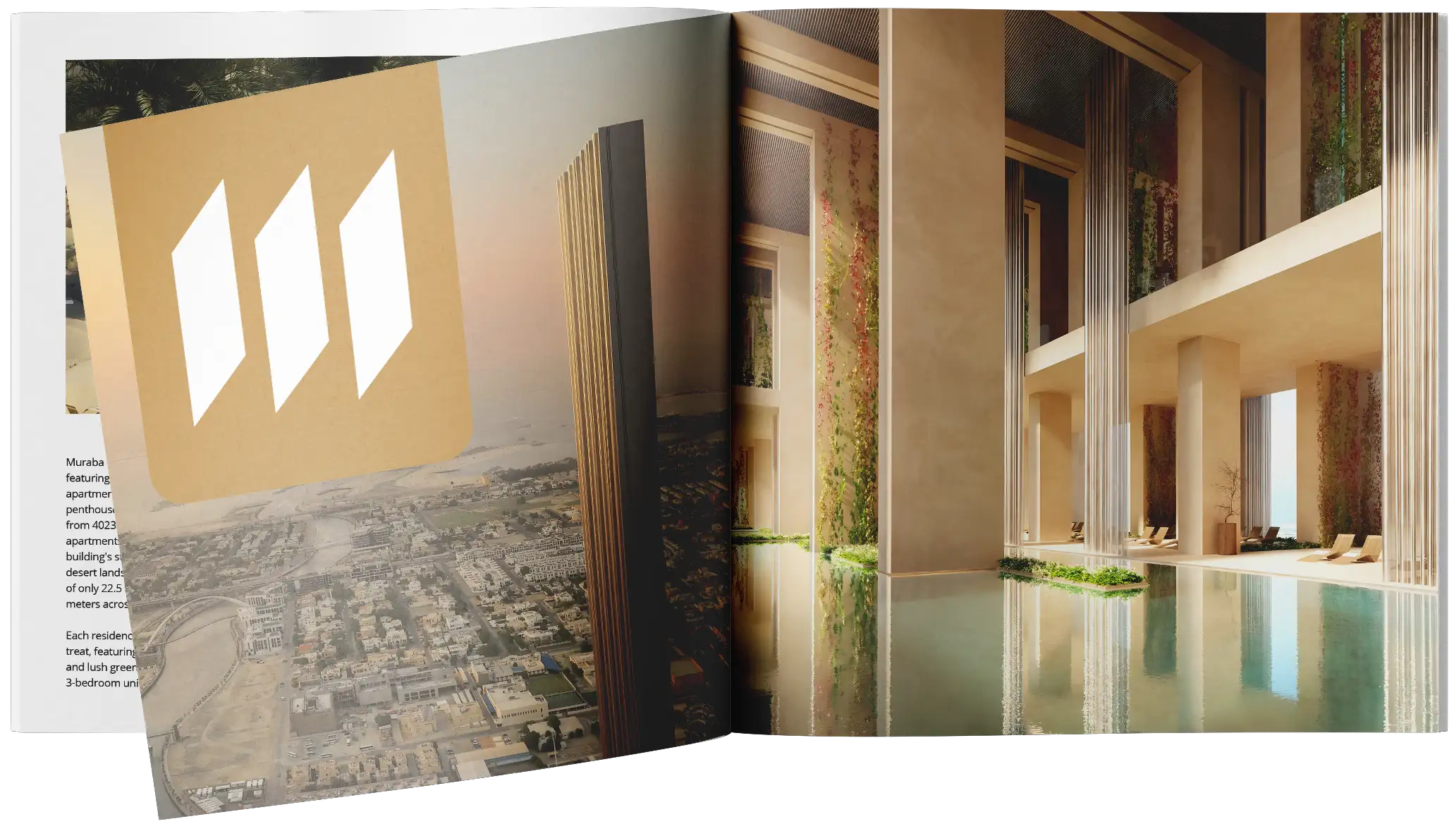 Muraba Veil is an exclusive high-rise residential development featuring 131 luxury residences, including 2- to 4-bedroom apartments, 3- and 4-bedroom duplexes, and 5-bedroom penthouses. The sizes of the properties at Muraba Veil range from 4023 sqft (374 m²) to 15122 sqft (1405 m²).