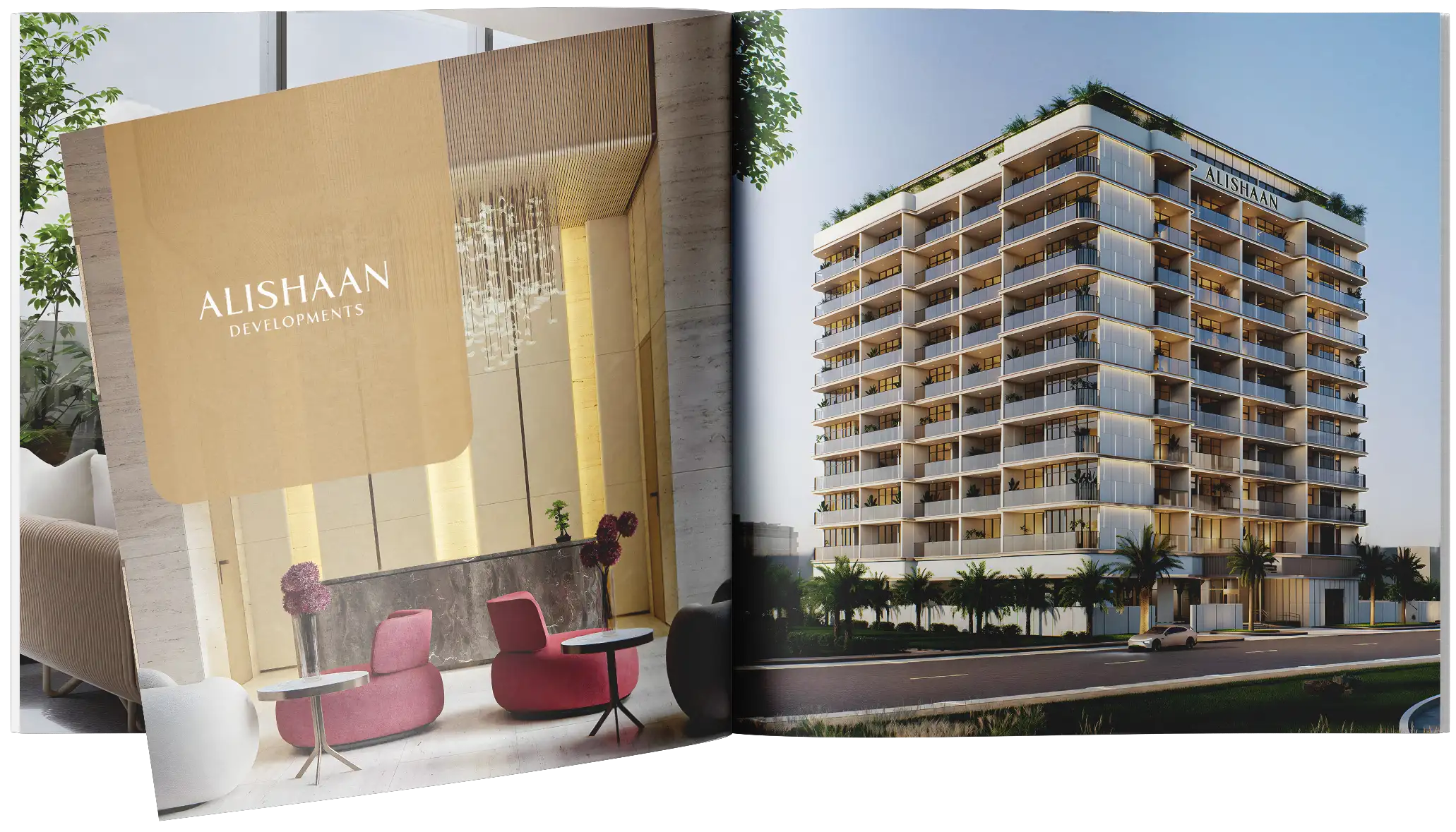 Parkgreen Residences at Liwan is a new residential development by Alishaan Developments at Dubailand. The building has a modern look with clean lines, light-coloured facades, lots of glass and green terraces. Inside this property in Dubai, there are beige tones, large windows and thoughtful lighting.