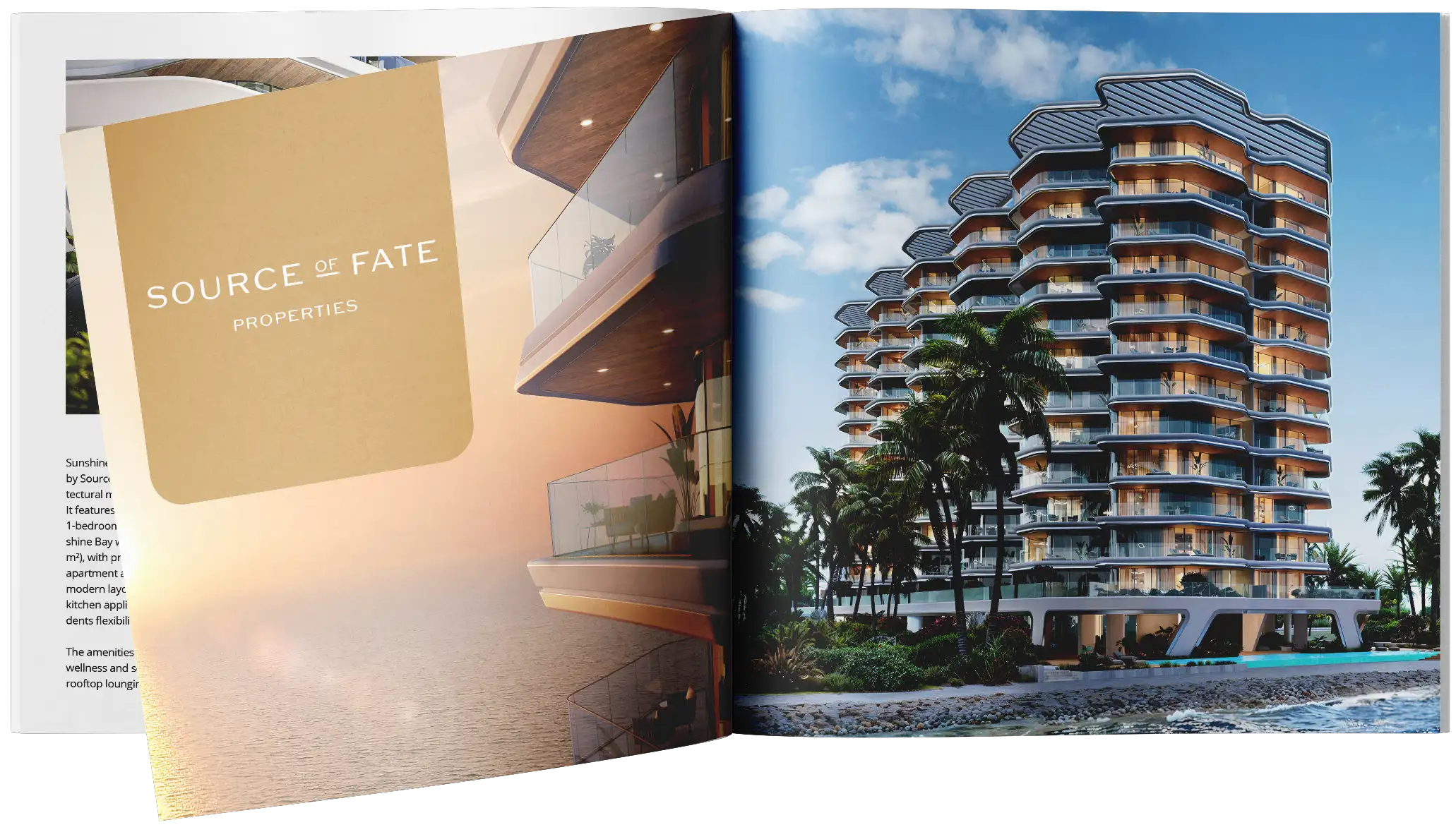 Sunshine Bay, a luxury seafront project on Al Marjan Island by Source of Fate Properties, is designed as a 12-story architectural marvel inspired by the elegant silhouette of a yacht. It features 240 high-end apartments, including studios, 1-bedroom, and 2-bedroom units. Properties at SoF Sunshine Bay will range from 439 sqft (41 m²) to 1411 sqft (131 m²), with prices starting from AED 980,000 ($266,800). Each apartment at Sunshine Bay Al Marjan Island will boast modern layouts and top-tier design, equipped with premium kitchen appliances but remaining unfurnished, giving residents flexibility in interior personalization.