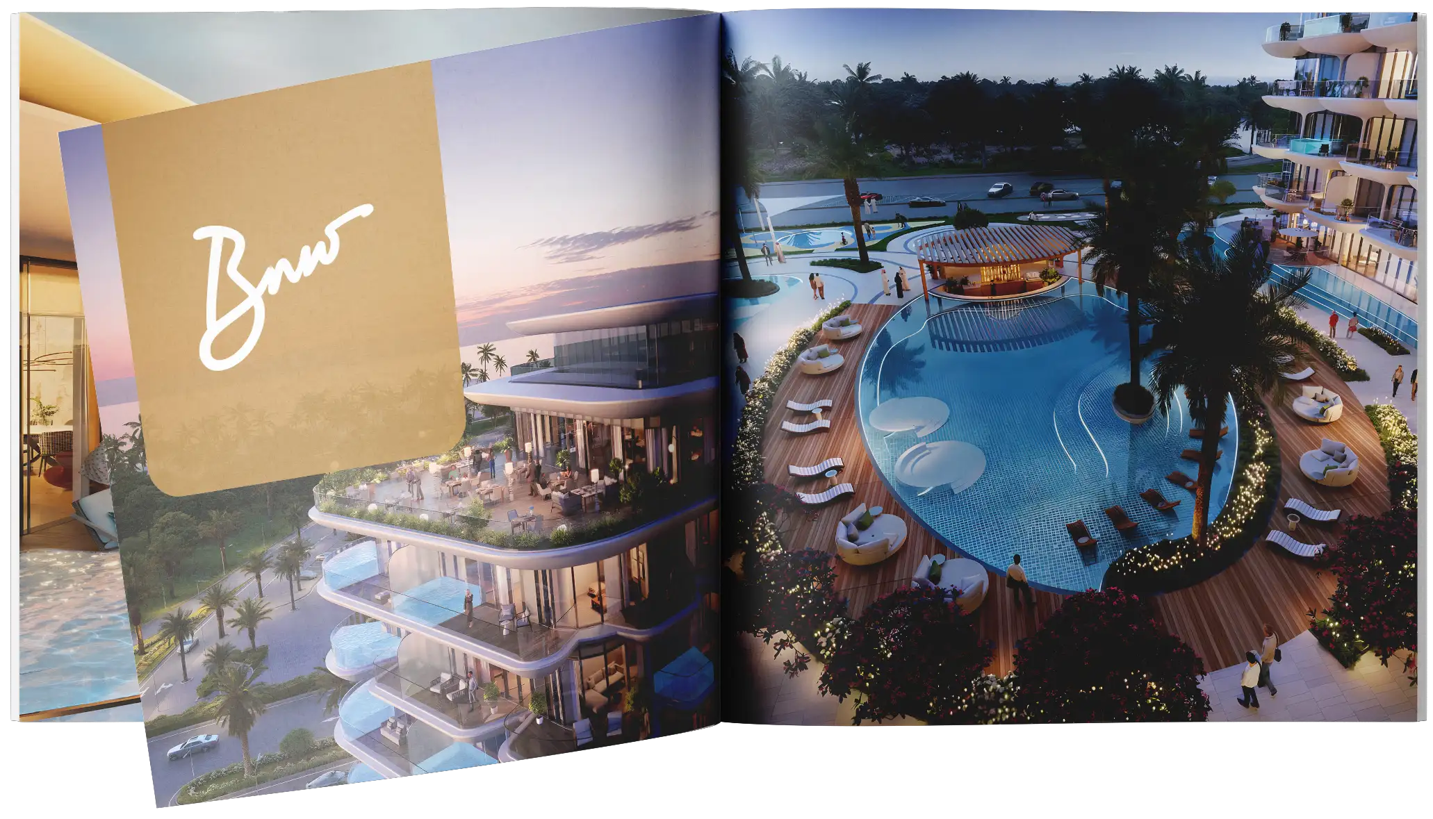 Taj Wellington Mews on Al Marjan Island is an exclusive residential project created by BNW Developments in collaboration with Taj Hotels. These are the first UAE branded residences by the legendary hotel group. The design of two graceful towers with undulating terraces and a curved 2-storey podium seamlessly intertwine modern minimalism and traditional Indian motifs. Every detail of the façade has been thoughtfully planned, from the floor-to-ceiling French windows to the warm neutral palette with golden accents.