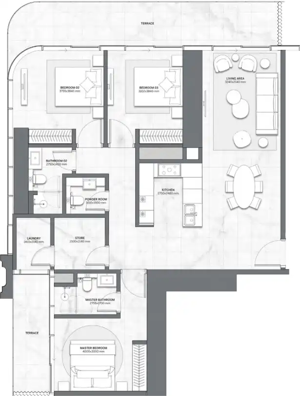 Properties at Trump International Hotel & Tower Dubai by DarGlobal include 400 residential and commercial units. The branded residences, located from the 18th to the 80th floor, feature 1, 2 and 3-bedroom apartments, as well as 4-bedroom penthouses with spacious terraces. The interiors are designed in the signature style of The Trump Organization, with an emphasis on an uncompromising palette, natural textures and the integration of smart systems. The exclusive feature of the project is the spectacular panoramic views of the Burj Khalifa, Dubai Fountain and the watery expanse of the Arabian Gulf.