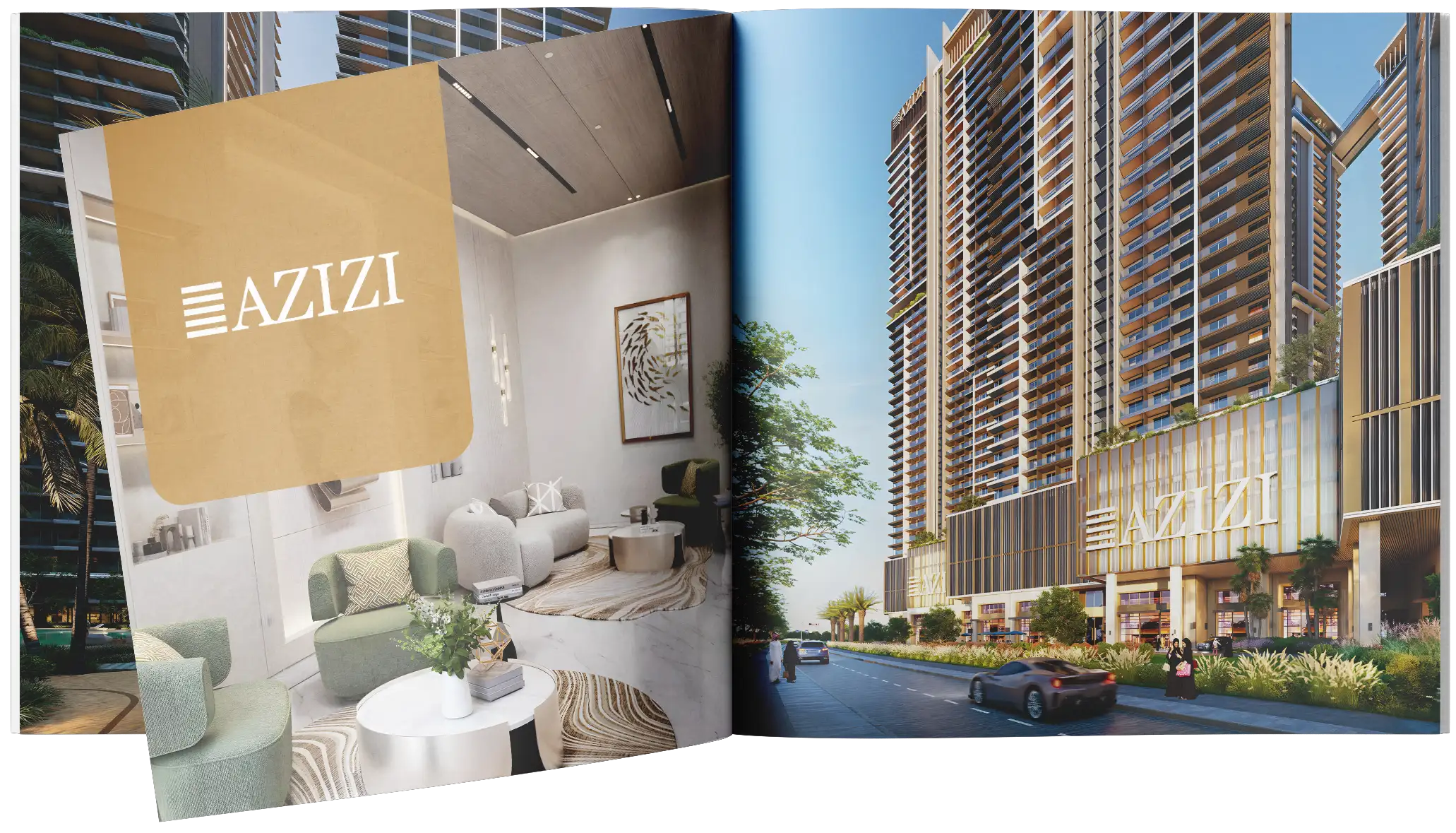 Azizi Milan Heights — масштабный жилой проект из восьми башен, объединенных общим подиумом с торговой галереей, зонами отдыха и курортными удобствами. Архитектурное решение выдержано в современном стиле со стеклянными фасадами, вертикальной динамикой и зелеными элементами. Все башни оборудованы прозрачными панорамными лифтами, а на крышах размещены общественные зоны с ландшафтным дизайном и инфинити-бассейнами.