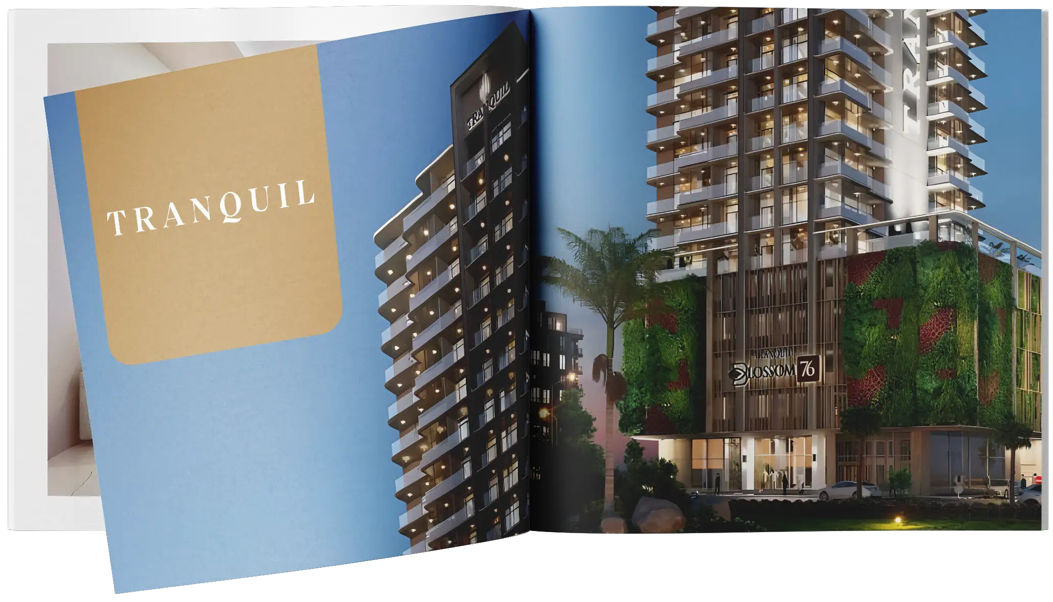 Blossom 76 by Tranquil Infra Developers — премиальный жилой комплекс в Jumeirah Village Circle, одном из самых востребованных районов Дубая. 22-этажное здание состоит из одного этажа с магазинами, 4 уровней подиума, 16 жилых этажей и крыши. Недвижимость Blossom 76 by Tranquil представлена студиями и апартаментами с 1 и 2 спальнями. Всего в проекте 111 эксклюзивных резиденций. Жилая площадь варьируется от 38 м² до 135 м². В отдельных апартаментах есть бассейны, что добавляет проекту статусности.