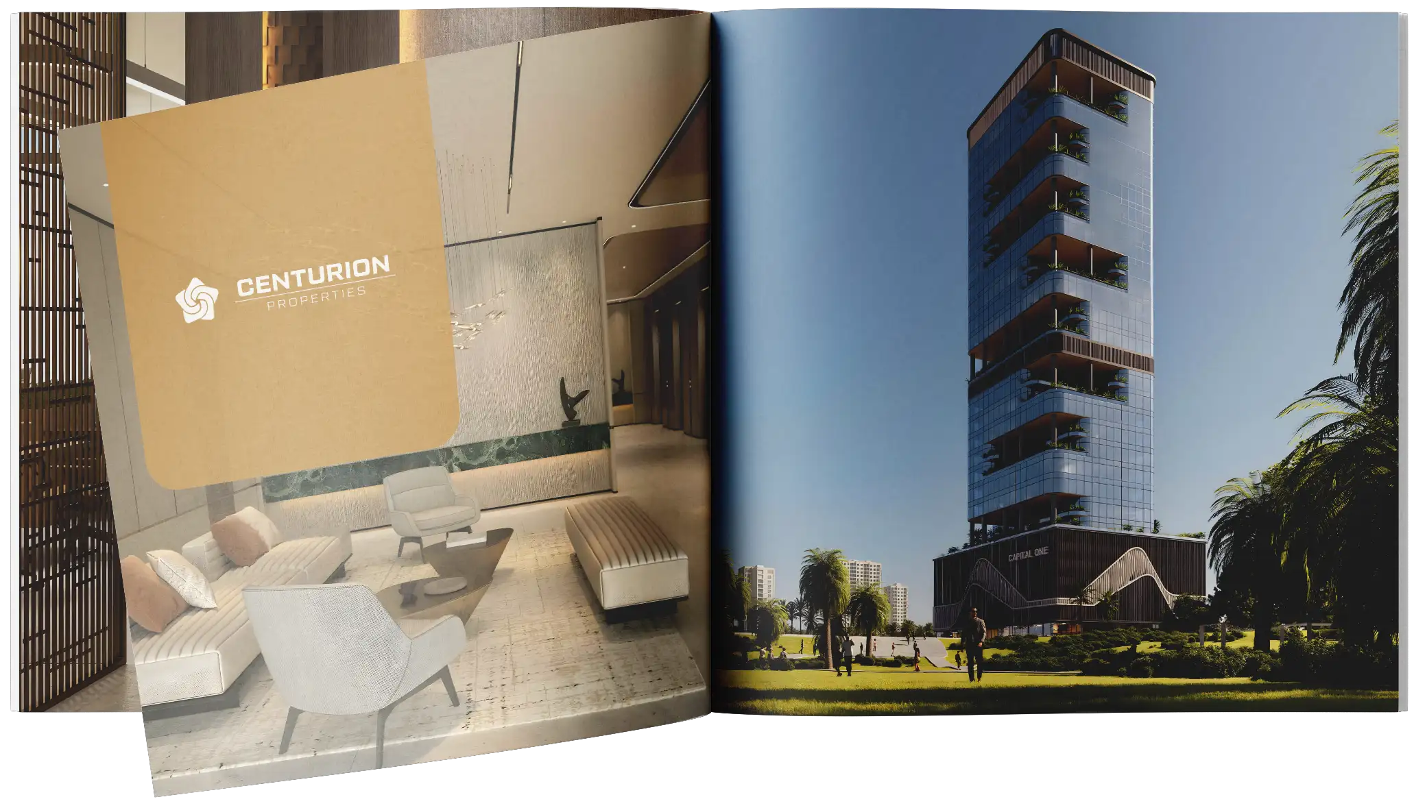 Capital One от Centurion Properties — 23-этажный бизнес-центр в Jumeirah Village Circle, спроектированный для компаний разного масштаба. Архитектура Centurion Capital One — стеклянная башня на подиуме с четкими линиями фасада. Входные группы тщательно продуманы, далее — полностью меблированные лобби, стойка ресепшн и лифтовые холлы. Нейтральные материалы, теплое световое решение и продуманная навигация создают спокойную деловую среду, которую легко адаптировать под фирменный стиль резидента. Панорамное остекление и продуманная сетка колонн обеспечивают естественное освещение и гибкость планировок: от открытых пространств до небольших кабинетов и переговорных.