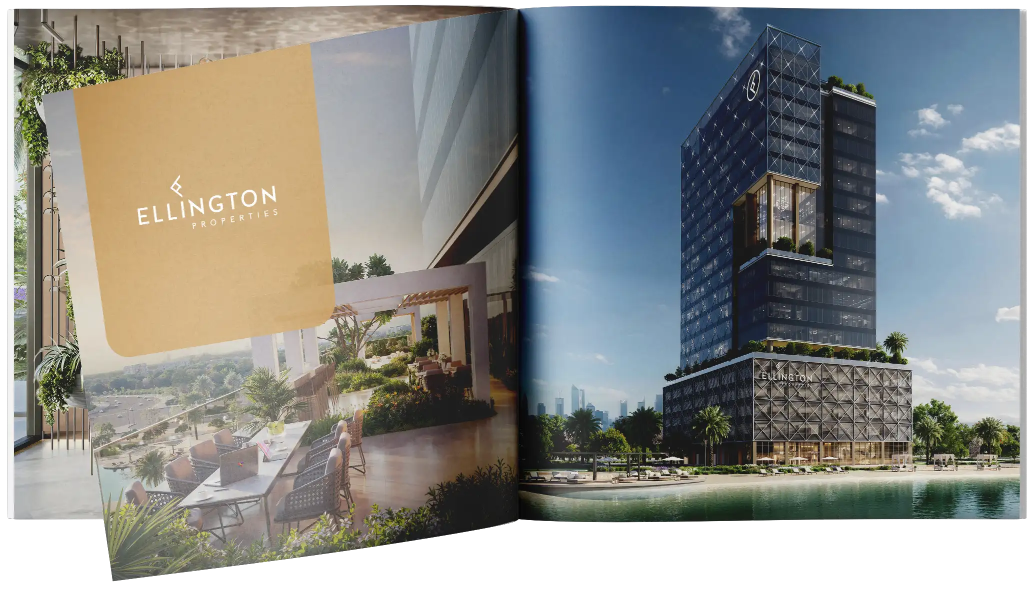 Eaton Square by Ellington — офисная башня в районе MBR City. 14 офисных этажей и удобства на 5-м, концепция «1 этаж — 1 владелец», 3 дуплекса. Коворкинг, фитнес-центр, зона для йоги, сауны и террасы у лагуны. Сдача — 2 квартал 2028 года, удобная рассрочка 70/30.