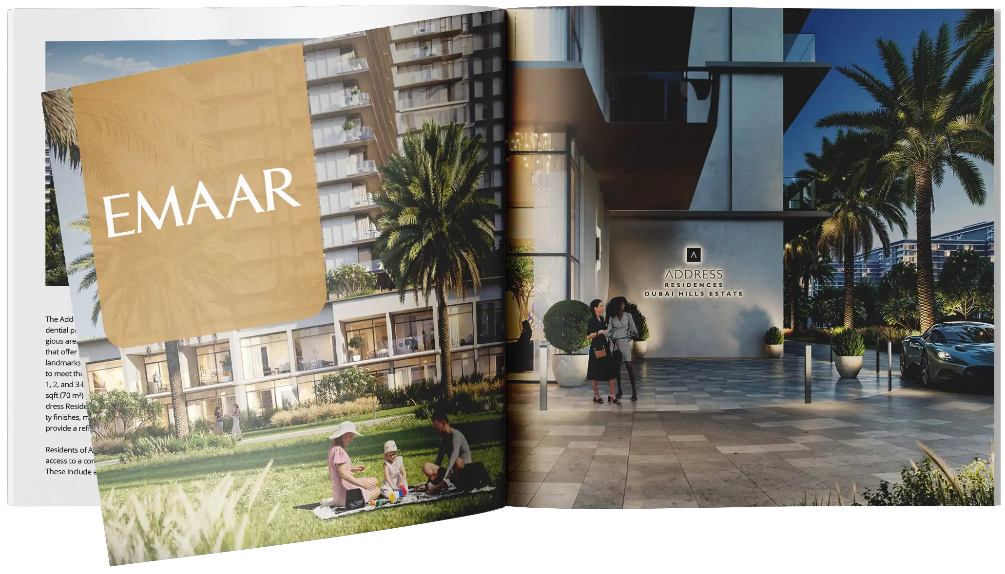 Address Residences Dubai Hills Estate — элитный жилой проект от компании Emaar Properties, расположенный в престижном районе. Комплекс состоит из двух высотных башен, из окон которых открывается панорамный вид на горизонт Дубая, включая такие знаковые достопримечательности, как Burj Khalifa. Недвижимость представлена коллекцией апартаментов с 1-3 спальнями площадью от 70 м² до 142 м². Резиденции спроектированы с учетом ключевых аспектов современной городской жизни. Все апартаменты в Emaar Address Residences Dubai Hills Estate предлагаются с высококачественной отделкой, отличаются современными планировками, в них используются технологии «умного дома», обеспечивающие комфорт проживания.
