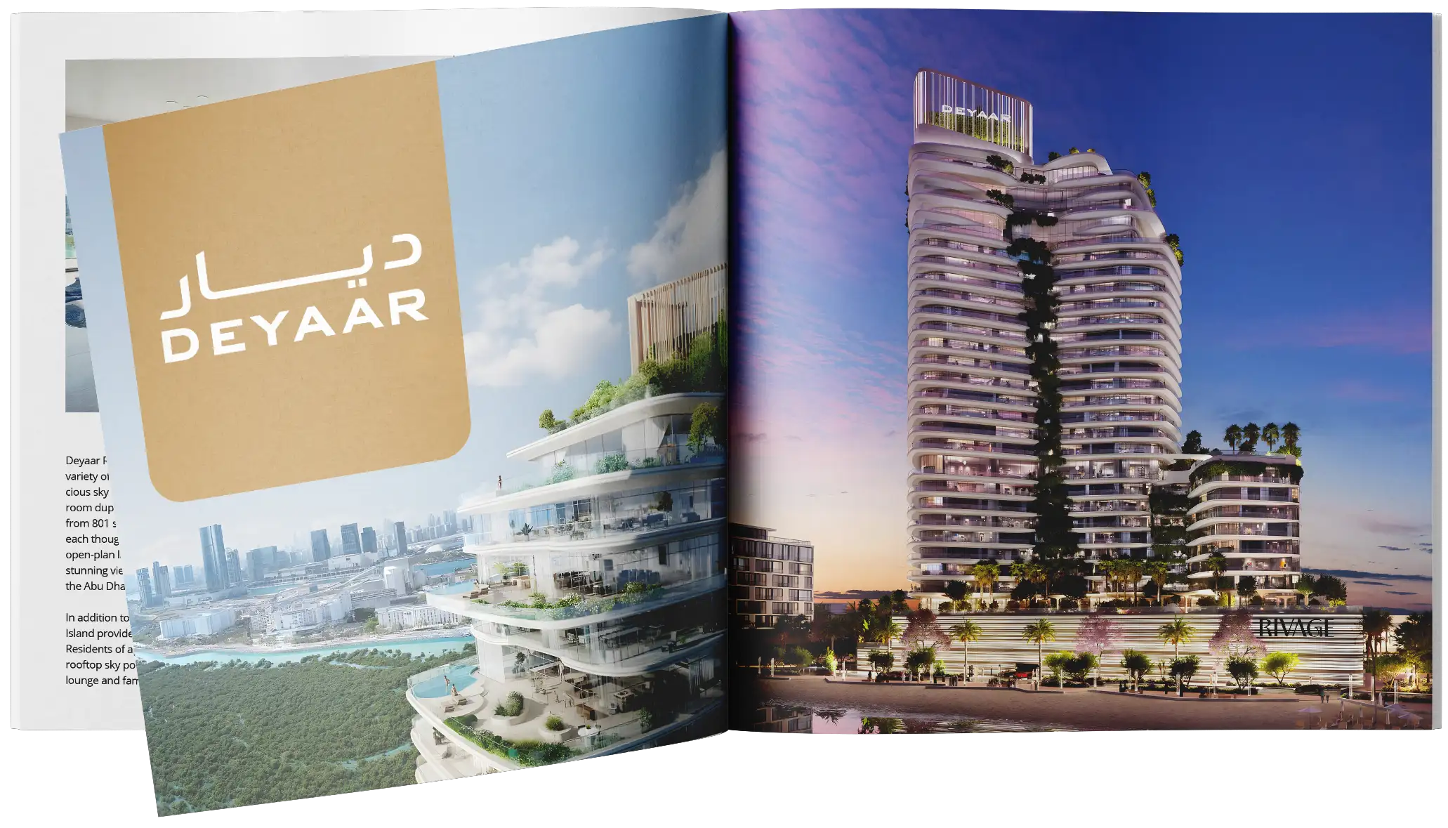 В Deyaar Rivage на острове Al Reem Island покупатели могут выбрать апартаменты с 1-3 спальнями, просторные sky-виллы и эксклюзивные небесные дворцы. Также предлагаются дуплексы с 1-3 спальнями, отвечающие самым разным требованиям стиля жизни.