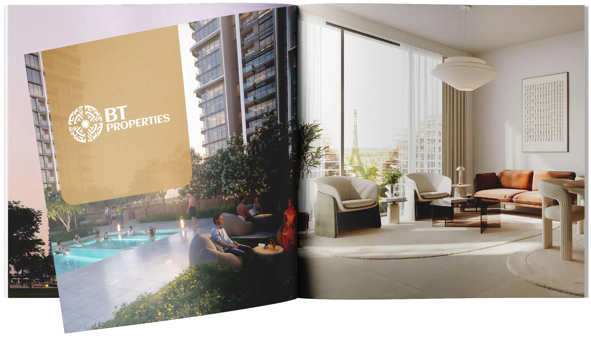 Waada by BT Properties — комьюнити в Dubai South, объединяющее 5 кластеров со студиями, апартаментами, таунхаусами и виллами. Это масштабный проект, окруженный водными каналами, с 40% озелененных территорий и репликой знаменитой Эйфелевой башни.